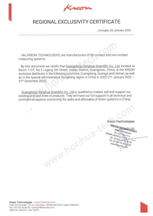 廣州鴻華智能裝備有限公司是法國(guó)科瑞朗KREON公司大中華區(qū)總經(jīng)銷 – 關(guān)節(jié)臂三坐標(biāo)測(cè)量機(jī)、三維激光掃描儀、激光跟蹤儀